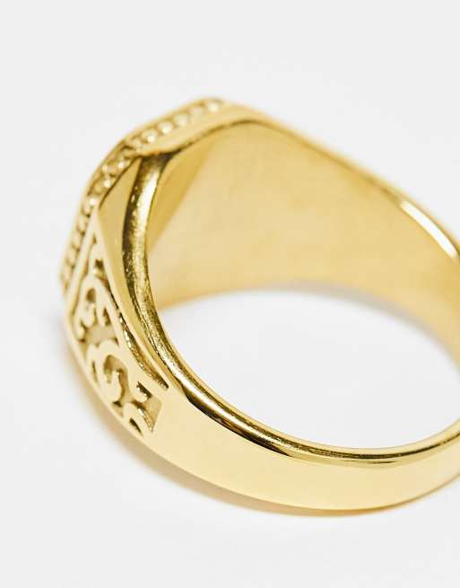Chevaliere outlet homme asos, ASOS DESIGN Chevali re en acier inoxydable imperm able avec d tails emboss s Dor outlet