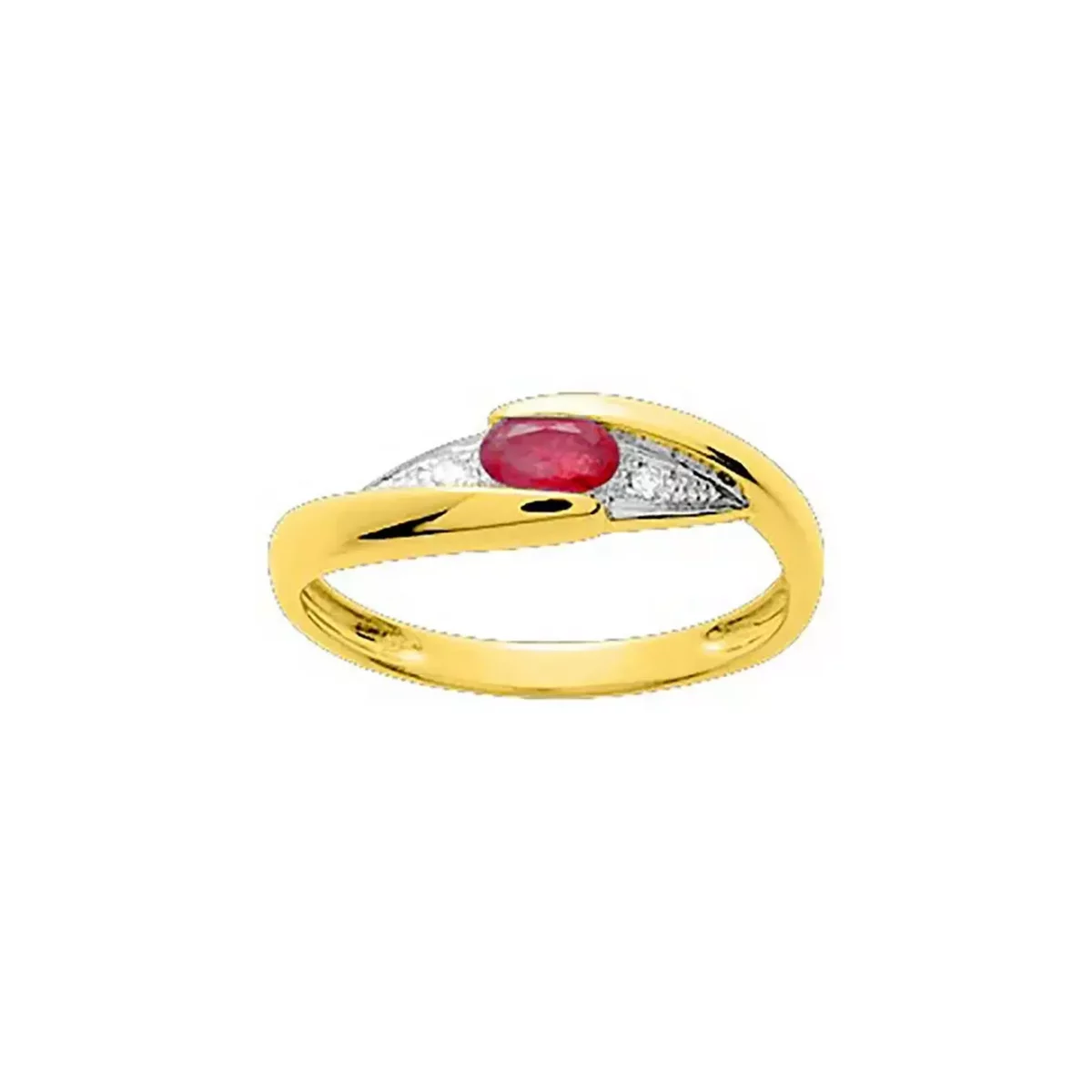 Tousmesbijoux Bague Femme Rubis Or 18 Carats Diamant 0 02