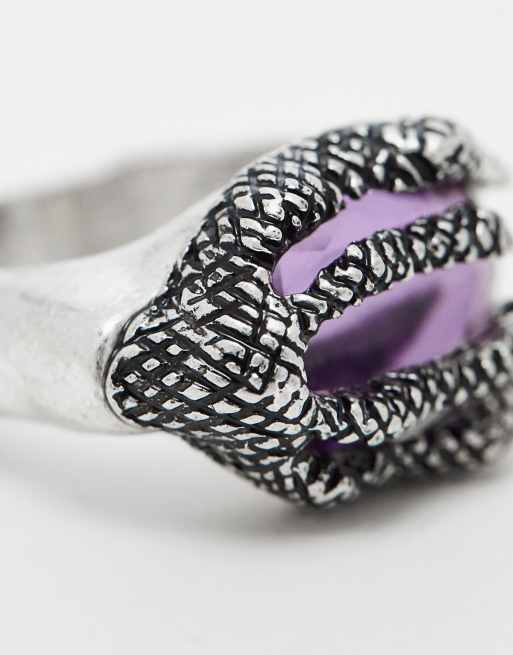 ASOS DESIGN Bague griffes avec pierre violette Argent ASOS