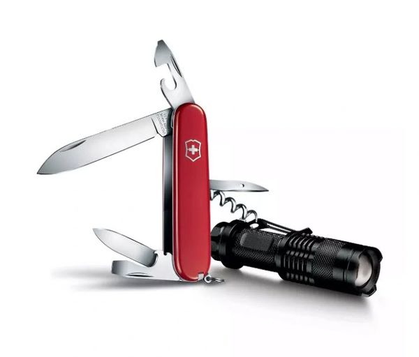 VICTORINOX Swiss Army Red 91 mm Spartan LED Flashlight Combo Set