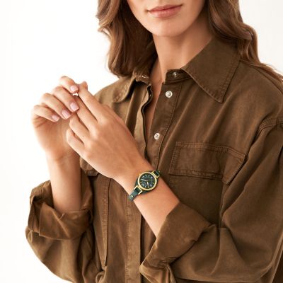 Carlie Three Hand Green LiteHide Leather Watch ES5241 Fossil