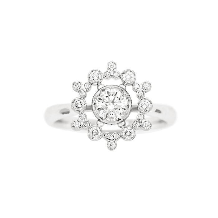 Bague de fian ailles Flocon entourage diamants joaillier Lyon