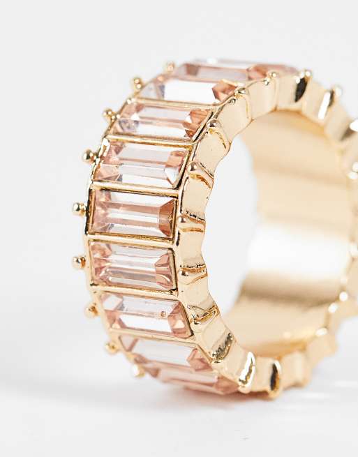 ASOS DESIGN Bague avec pierres roses taille baguette Dor ASOS