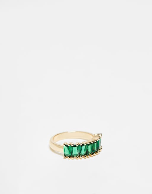 ASOS DESIGN Bague avec zircons cubiques verts en taille baguette