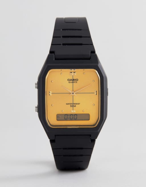Casio Gold Face Black Resin Strap Watch AW48HE 9A