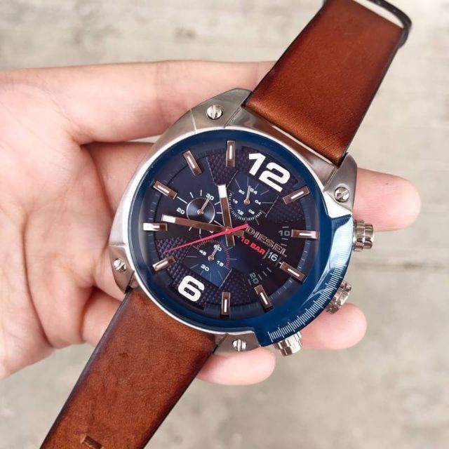 Diesel Overflow Chronograph Blue Dial Brown Leather Band Men s Watch DZ4400