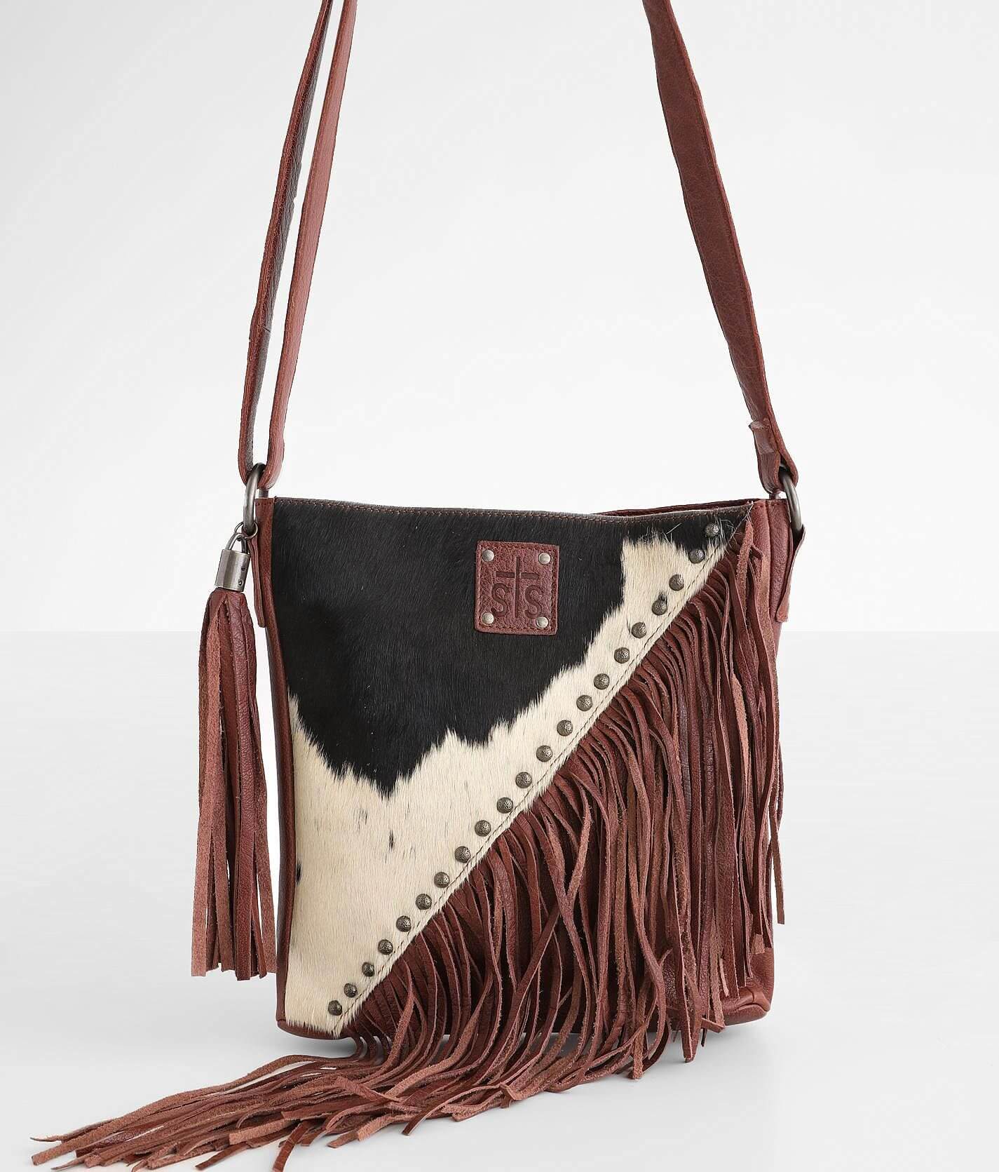 Cowhide outlet purse crossbody, Klassy Cowgirl Leather Crossbody Bag with hair on cowhide fringe outlet