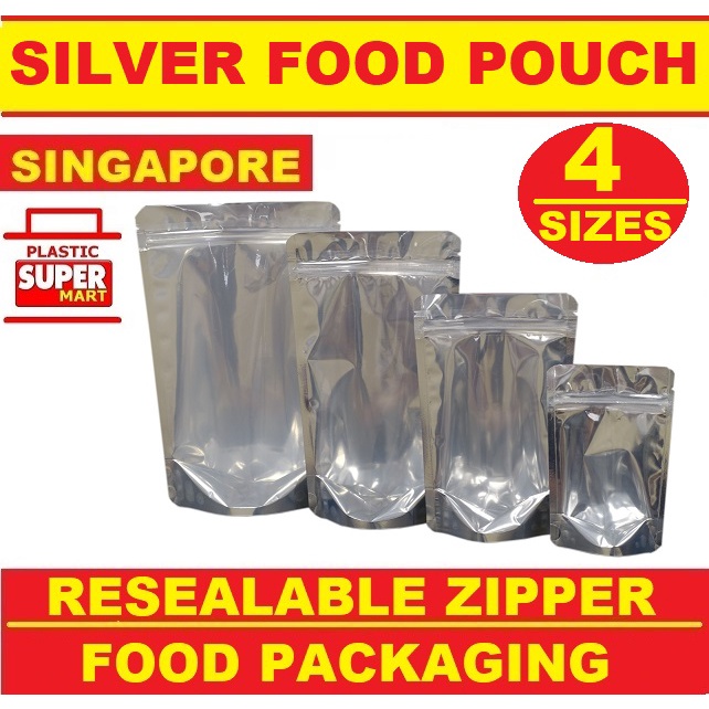 Food Pouches BULK 100 Silver Snack Food Packaging Bags Zipper