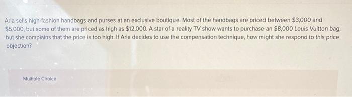 Solved Aria sells high fashion handbags and purses at an Chegg
