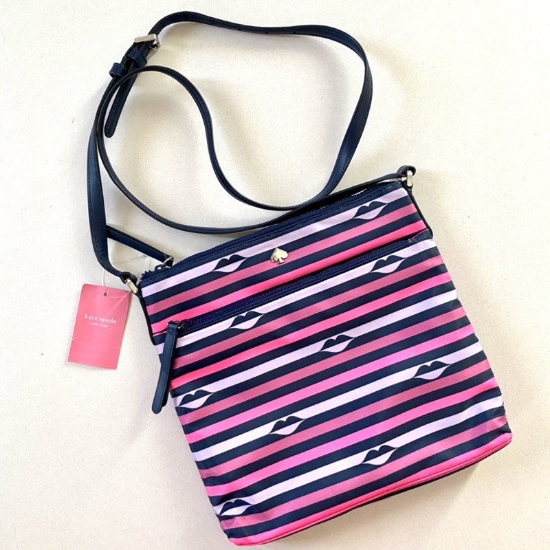 NEW Kate Spade Jae Nylon Flat Crossbody Hand Bag Striped Lips Pink