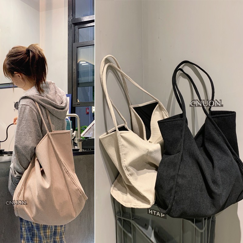 Women Corduroy Shoulder Bag Canvas Cloth Fabric Handbag Solid