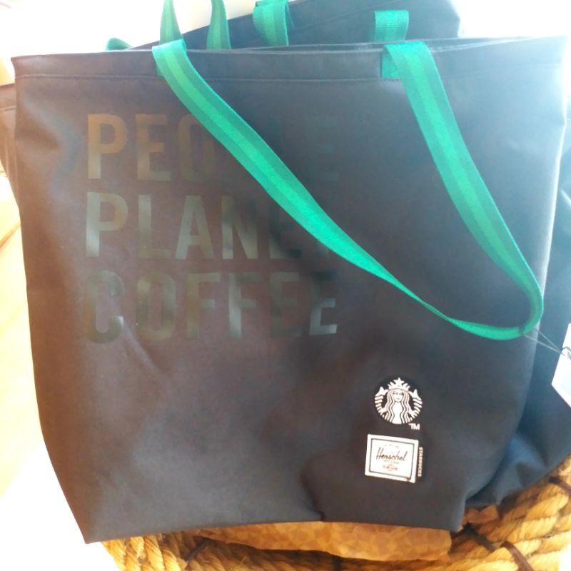 ORIGINAL Starbucks Herschel Supply Green Black Siren People Planet Coffee Reusable Recycle Mica Tote Bag