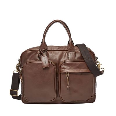 Fossil Defender Leather Double Zip Work Bag Business Cases