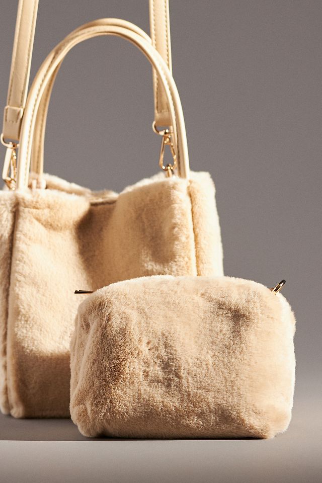 Faux fur outlet mini bag, ASOS DESIGN mini tote bag in natural long faux fur outlet