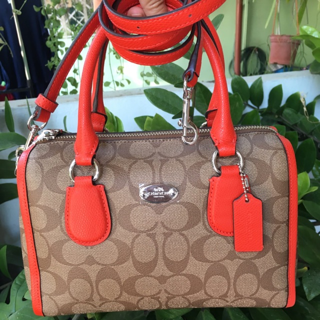 COACH F34084 SIGNATURE MINI BENNETT SATCHEL LIGHT GOLD BROWN BLACK