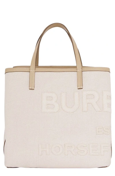 Burberry Mini Beach Horseferry Logo Canvas Tote In Ecru ModeSens