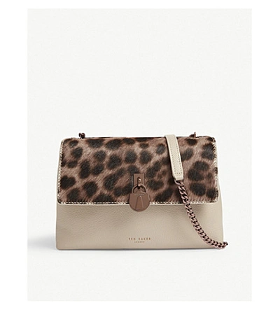 Ted Baker Canann Leopard Print Leather Cross body Bag In Taupe