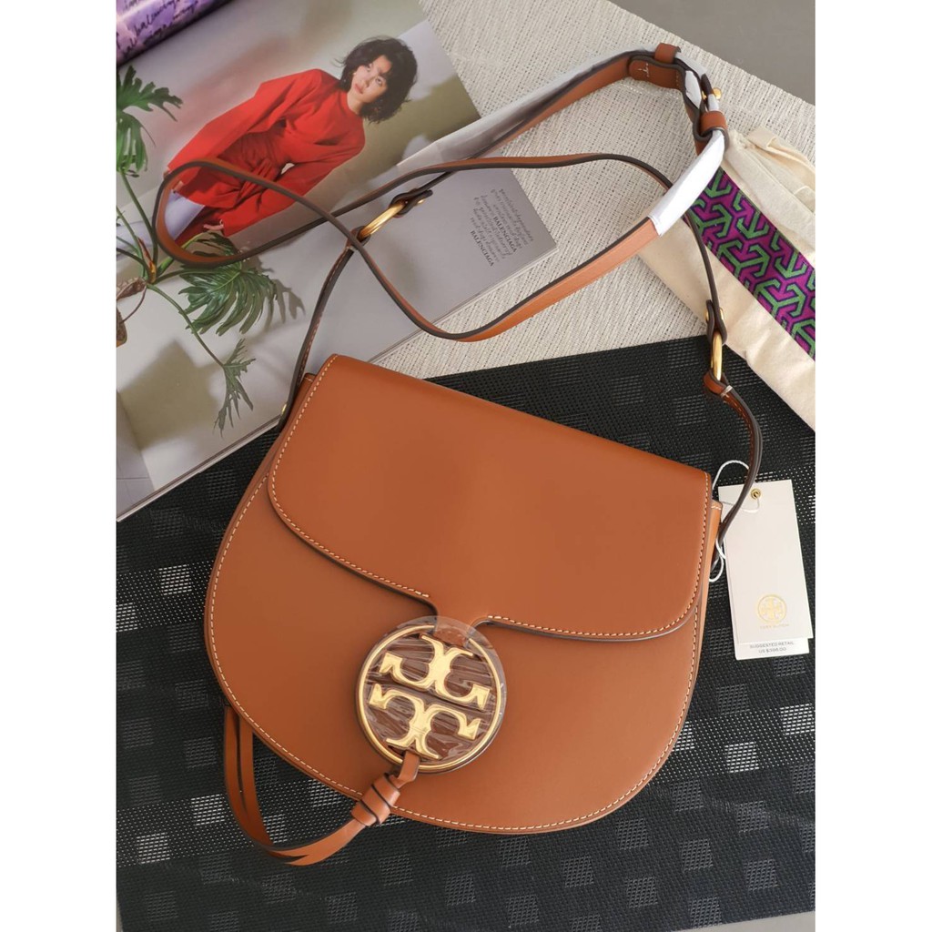New TORY BURCH MILLER CANVAS QUADRANT SADDLE BAG Shopee