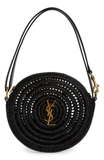 Saint Laurent Ysl Round Raffia Shoulder Bag In Black ModeSens