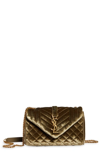 Saint Laurent Small Ysl Velour Chain Shoulder Bag In 3346 Dk Vint