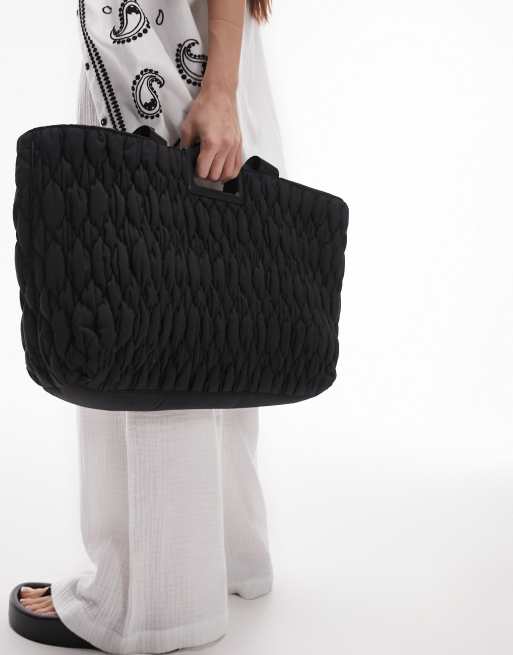 Topshop Tegan micro quilt nylon tote bag in black