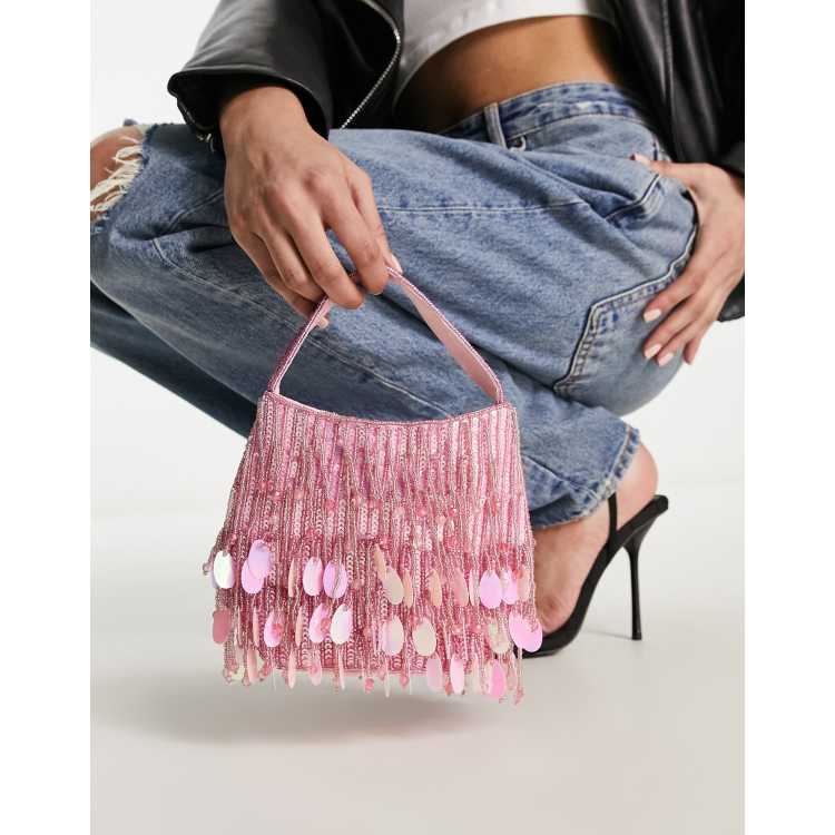 Asos outlet pink bag, ASOS DESIGN shoulder bag with crystal strapping detail in pink outlet