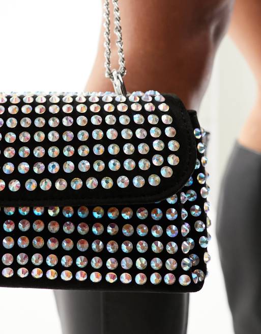 Asos outlet chain bag, ASOS DESIGN large diamante stud flap crossbody bag with chain in outlet