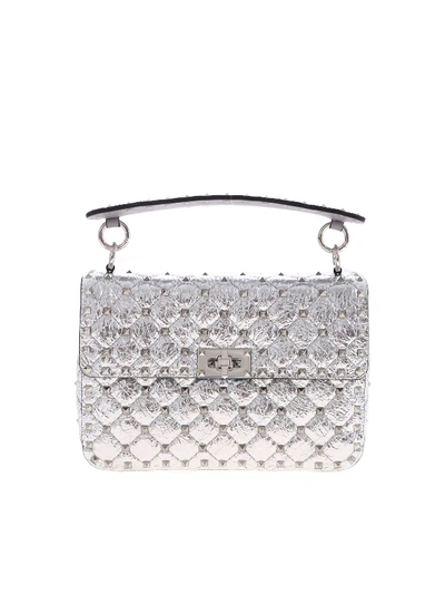 Valentino Garavani Rockstud Spike Medium Bag In Silver Colour