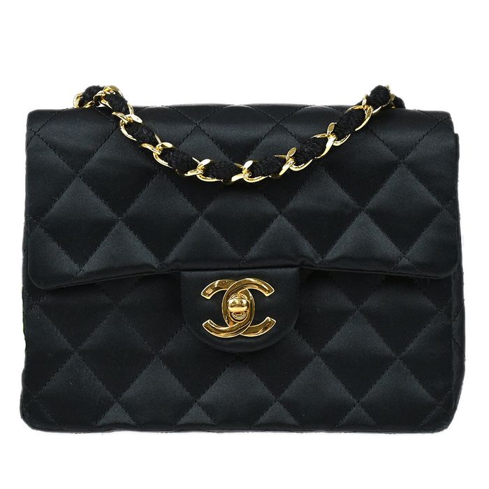 Chanel CHANEL 1986 1988 Classic Flap Mini Square 17 Black Satin