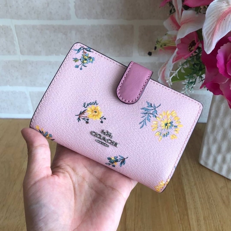 Medium corner zip wallet with outlet dandelion floral print, Coach Medium Corner Zip Wallet With Dandelion Floral Print Chalk outlet