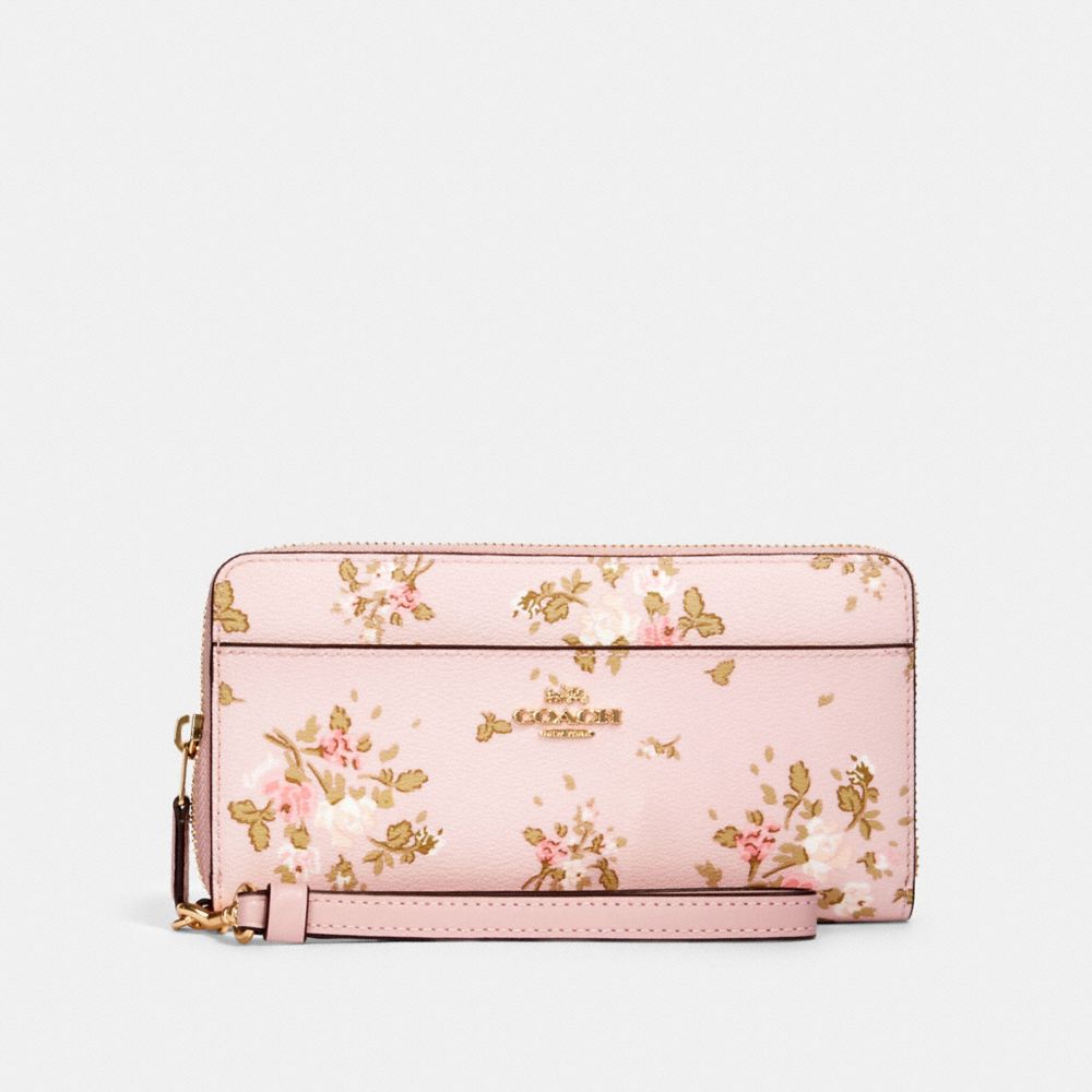 COACH 89966 ACCORDION ZIP WALLET WITH ROSE BOUQUET PRINT IM