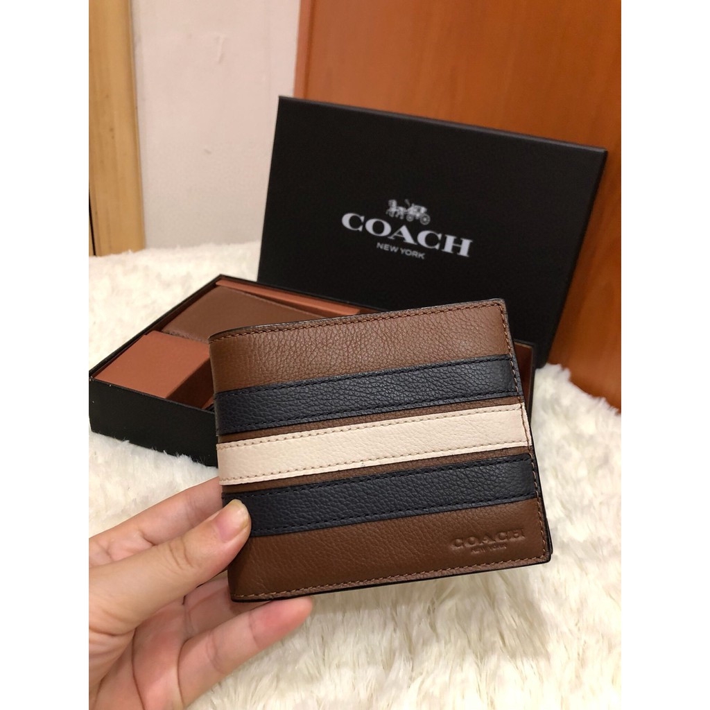 Coach Wallet Men Short Wallet Folding Stripes Gift Box Packaging