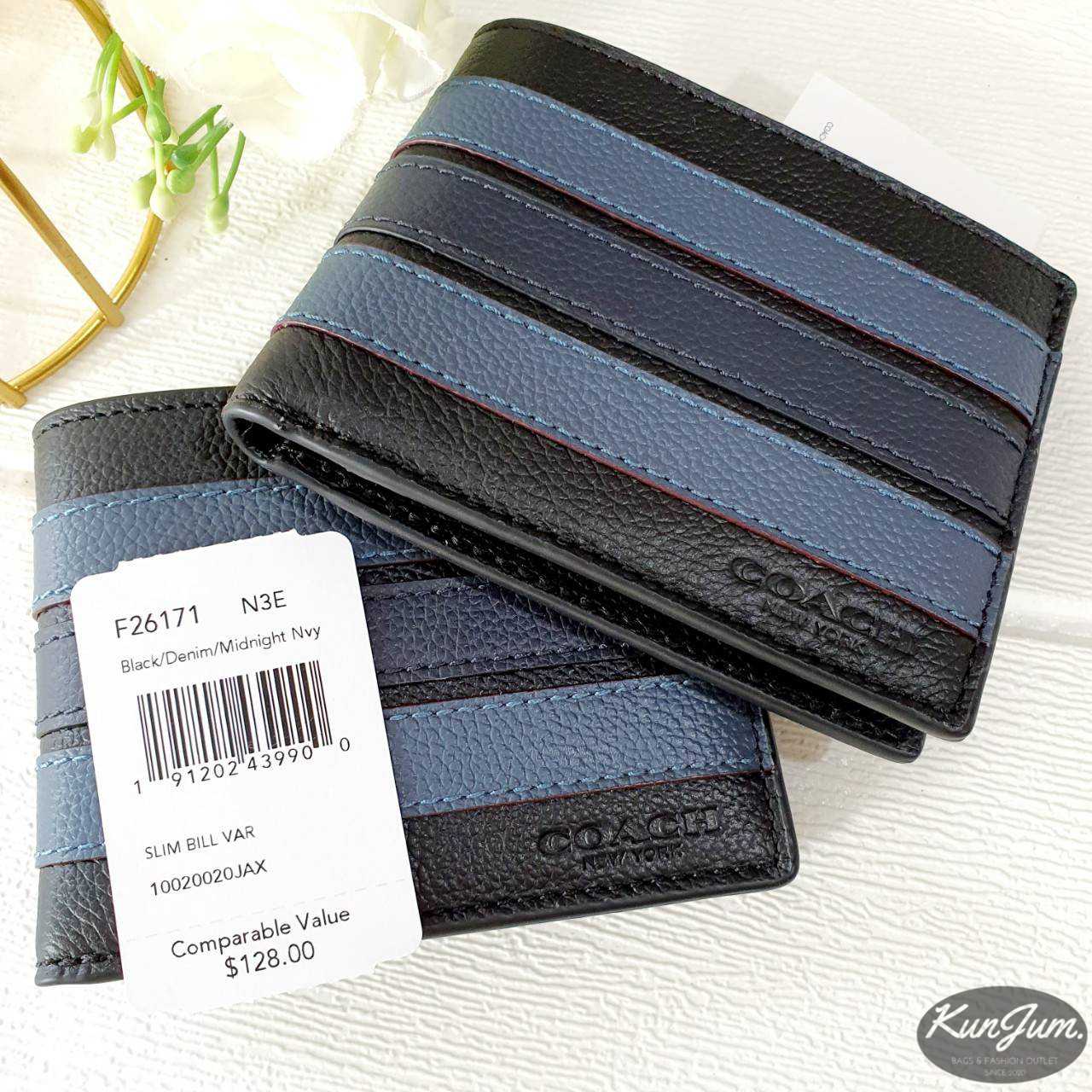 Coach s Men SLIM BILL VAR F26171 Saddle Midnight Nvy Chalk 2 Piece Wallet