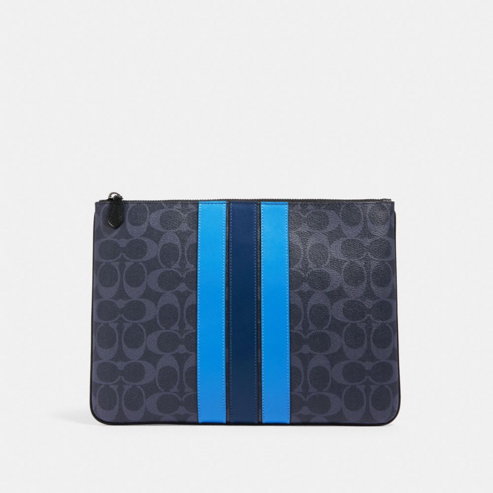 COACH 91673 LARGE POUCH IN SIGNATURE CANVAS WITH VARSITY STRIPE