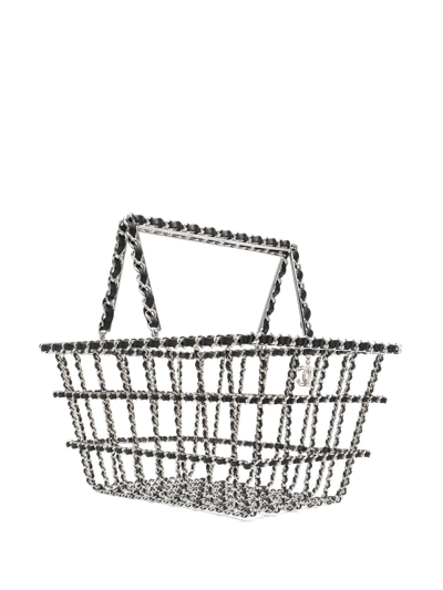Pre owned Chanel 2014 Xxl Shopping Basket Bag In Silver ModeSens