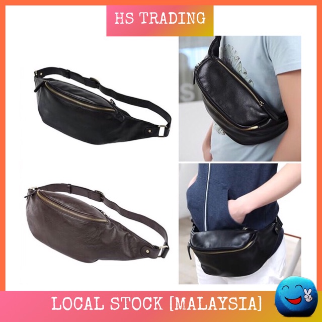 READY STOCK Beg Pinggang Lelaki Man Chest Waist Slim PU Leather