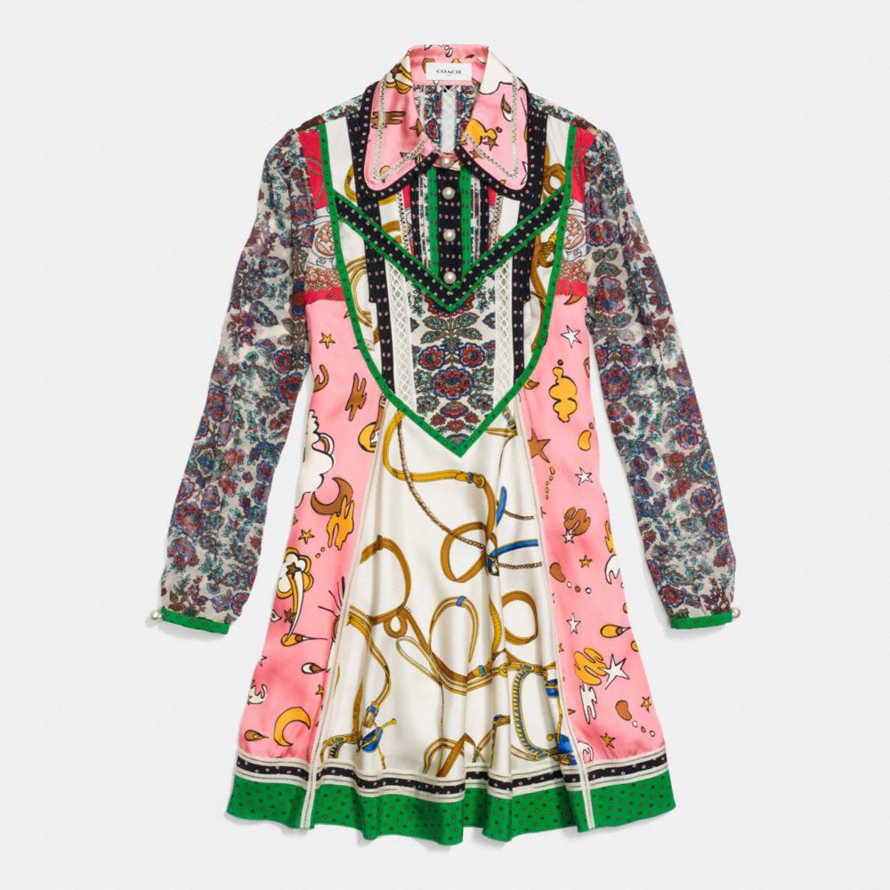 Coach outlet 1941 dress, Coach 1941 Women s Forest Floral Print Pleated Dress Green Peach outlet