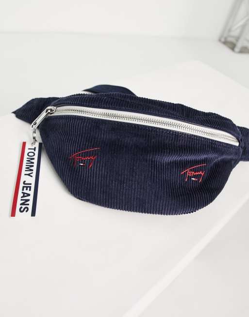 Tommy Jeans cord bum bag in navy with all over print logo ASOS