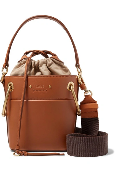 Chlo Roy Mini Calf Leather Bucket Bag Brown In Light Brown