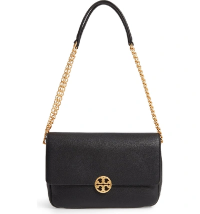 Tory Burch Chelsea Leather Convertible Shoulder Bag In Black