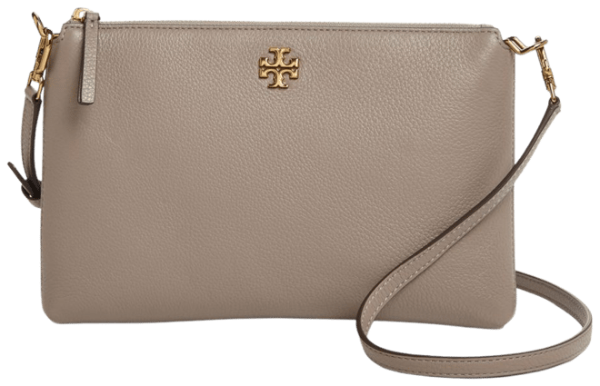 Tory Burch Grey Pebbled Leather Kira Top Zip Crossbody Bag Tory Burch The Luxury Closet