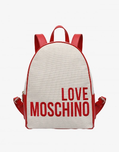 Love Moschino Canvas Backpack With Logo In White ModeSens