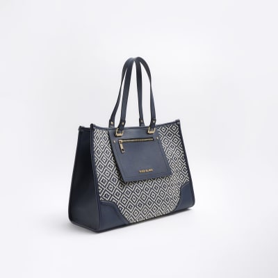 River Island Navy RI Jacquard Shopper Tote Bag One Size NAVY
