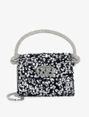 DUNE Sparkling sequin embellished woven clutch bag Selfridges