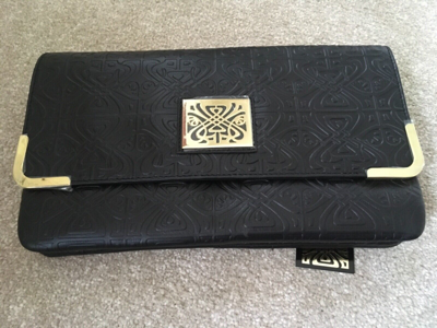Pre owned Biba Black Leather Faith Embossed Clutch