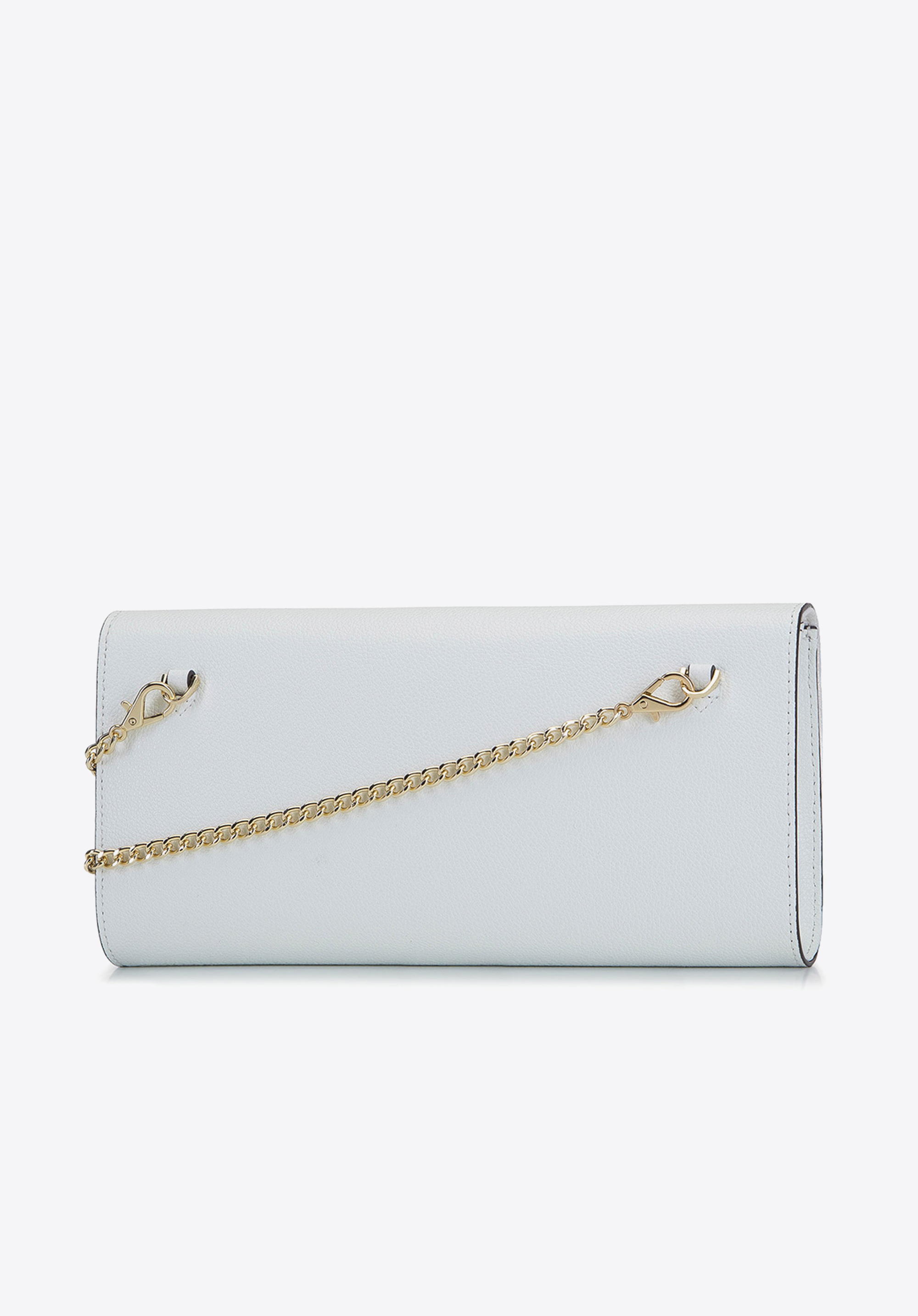 - white clutch bag with silver chain