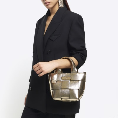 River island outlet gold purse, Gold chunky weave small tote bag River Island outlet