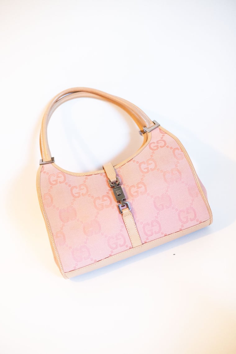 Vintage GUCCI Y2K Pink Canvas Monogram Nude Leather Jackie