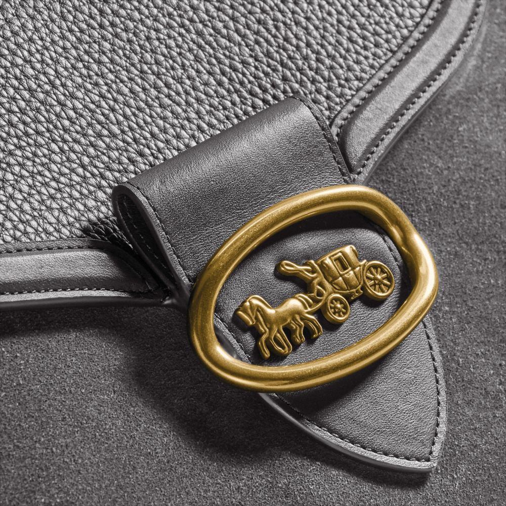 Coach 1941 Women s Coated Canvas Mixed Leather Kat Saddle Bag 20 Brown Black