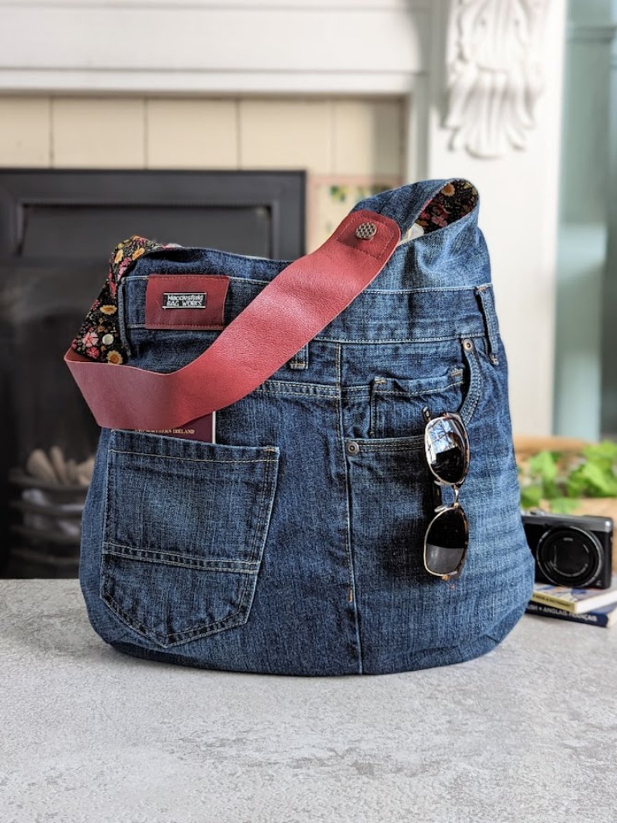 Justin s Jeans upcycled denim hard handle bag Amelia florals and